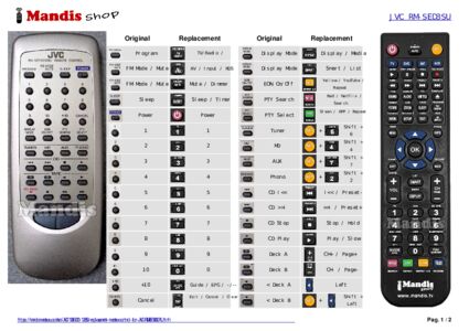 Below, we will show you the correspondence between each button on the original remote control and the button that performs the same function on the replacement remote control. In some cases, you may need to press the SHIFT key before pressing another button to perform certain actions. These additional functions are often not widely used and are included to facilitate understanding of the replacement remote control, or because the original remote control has more buttons than its equivalent.