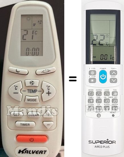 My LG air-conditioner's remote died and need replacement. AircoPlus did the job. I should point out that the code match did not correspond according to manufacturer's table. Let the auto-search code set up do the work. Also, excellent service by Mandis Remotes with a well-protected package.