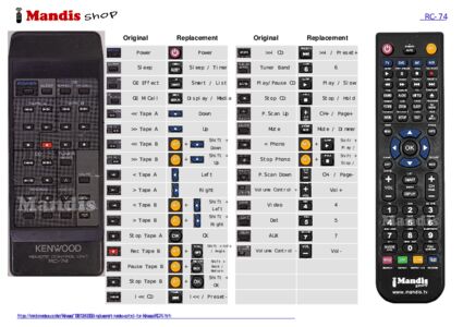 This remote control fully replaces your RC-74 and offers all the functions of the original.