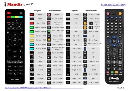 Below, we will show you the correspondence between each button on the original remote control and the button that performs the same function on the replacement remote control. In some cases, you may need to press the SHIFT key before pressing another button to perform certain actions. These additional functions are often not widely used and are included to facilitate understanding of the replacement remote control, or because the original remote control has more buttons than its equivalent.