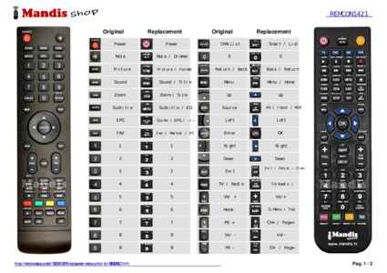 A document is included to help you use the new remote control easily, showing the button correspondence.