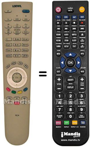 Below, we will show you the correspondence between each button on the original remote control and the button that performs the same function on the replacement remote control. In some cases, you may need to press the SHIFT key before pressing another button to perform certain actions. These additional functions are often not widely used and are included to facilitate understanding of the replacement remote control, or because the original remote control has more buttons than its equivalent.