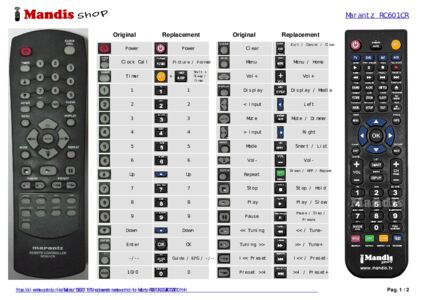 A document is included to help you use the new remote control easily, showing the button correspondence.
