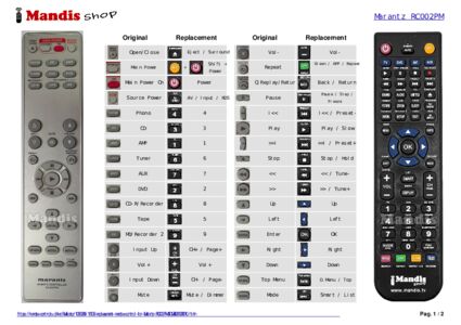 Below, we will show you the correspondence between each button on the original remote control and the button that performs the same function on the replacement remote control. In some cases, you may need to press the SHIFT key before pressing another button to perform certain actions. These additional functions are often not widely used and are included to facilitate understanding of the replacement remote control, or because the original remote control has more buttons than its equivalent.