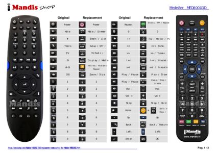 This remote control fully replaces your MED800X3D and offers all the functions of the original.