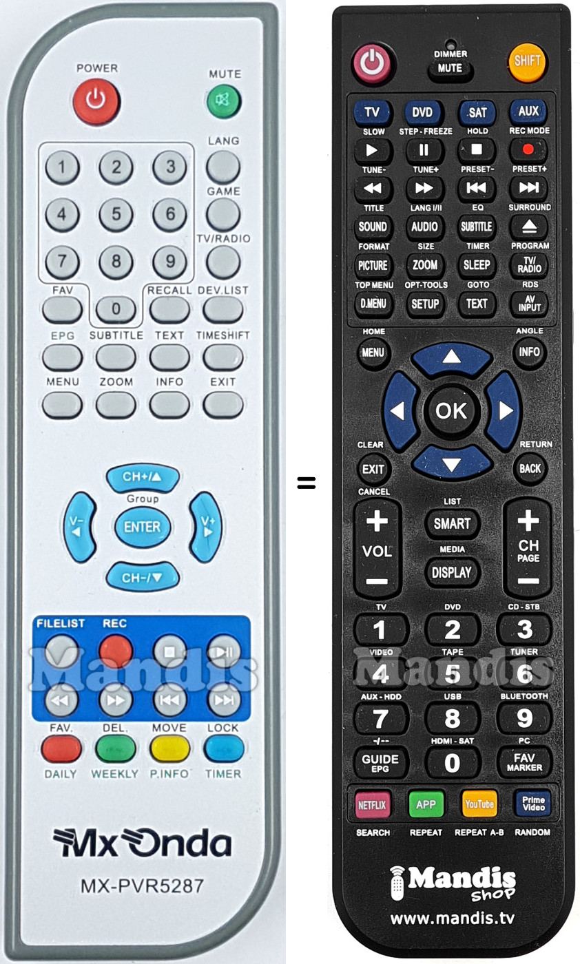 This remote control fully replaces your MX-PVR5287 and offers all the functions of the original.