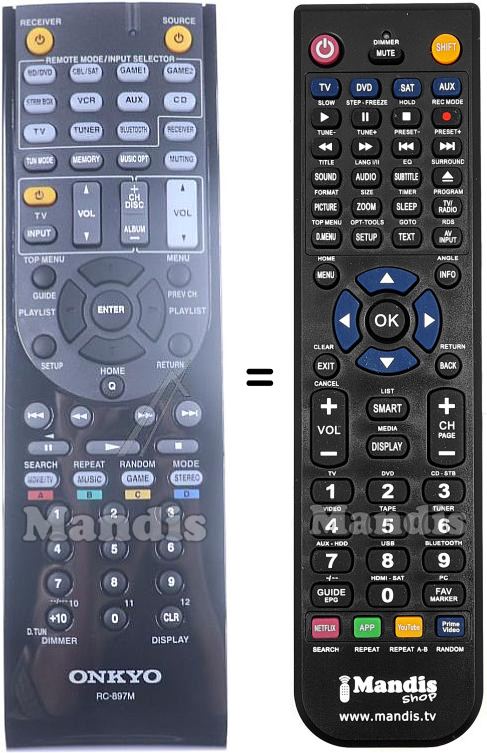 This remote control fully replaces your RC-897M and offers all the functions of the original.