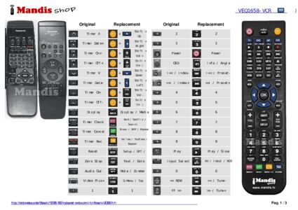 Below, we will show you the correspondence between each button on the original remote control and the button that performs the same function on the replacement remote control. In some cases, you may need to press the SHIFT key before pressing another button to perform certain actions. These additional functions are often not widely used and are included to facilitate understanding of the replacement remote control, or because the original remote control has more buttons than its equivalent.