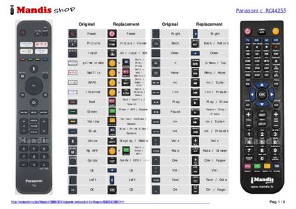 Below, we will show you the correspondence between each button on the original remote control and the button that performs the same function on the replacement remote control. In some cases, you may need to press the SHIFT key before pressing another button to perform certain actions. These additional functions are often not widely used and are included to facilitate understanding of the replacement remote control, or because the original remote control has more buttons than its equivalent.