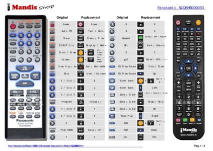 Below, we will show you the correspondence between each button on the original remote control and the button that performs the same function on the replacement remote control. In some cases, you may need to press the SHIFT key before pressing another button to perform certain actions. These additional functions are often not widely used and are included to facilitate understanding of the replacement remote control, or because the original remote control has more buttons than its equivalent.