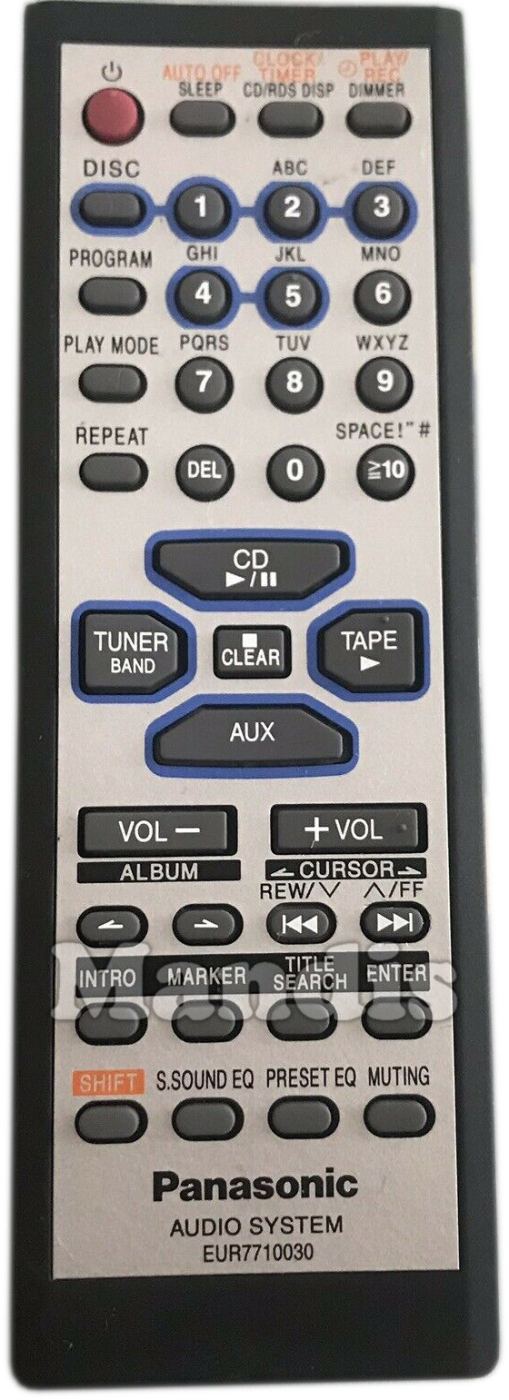 original remote control EUR7710030 used for hi-fi system for the brand Panasonic. This is an original remote control.
