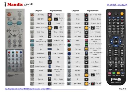 Below, we will show you the correspondence between each button on the original remote control and the button that performs the same function on the replacement remote control. In some cases, you may need to press the SHIFT key before pressing another button to perform certain actions. These additional functions are often not widely used and are included to facilitate understanding of the replacement remote control, or because the original remote control has more buttons than its equivalent.