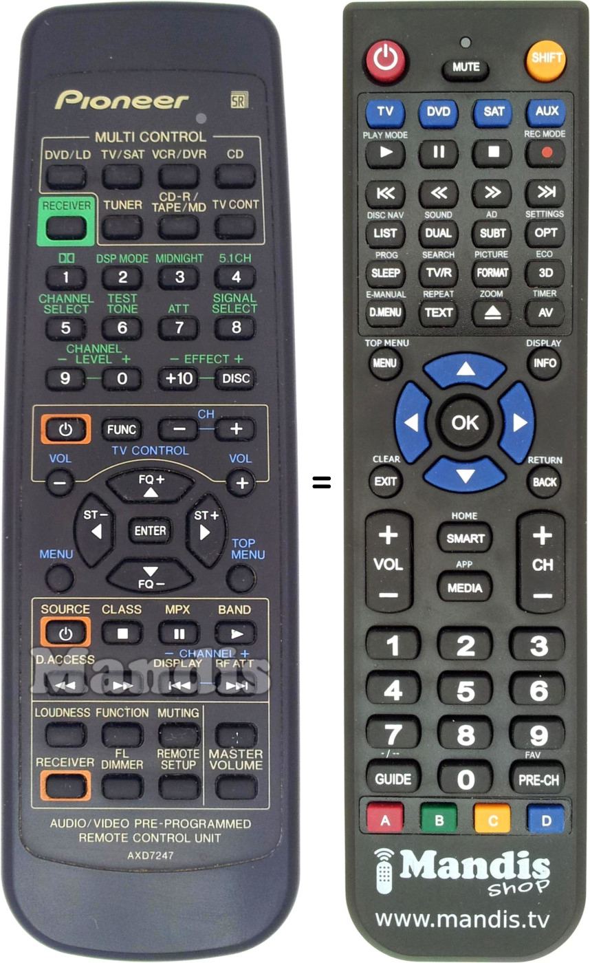 This remote control fully replaces your AXD7247 and offers all the functions of the original.
