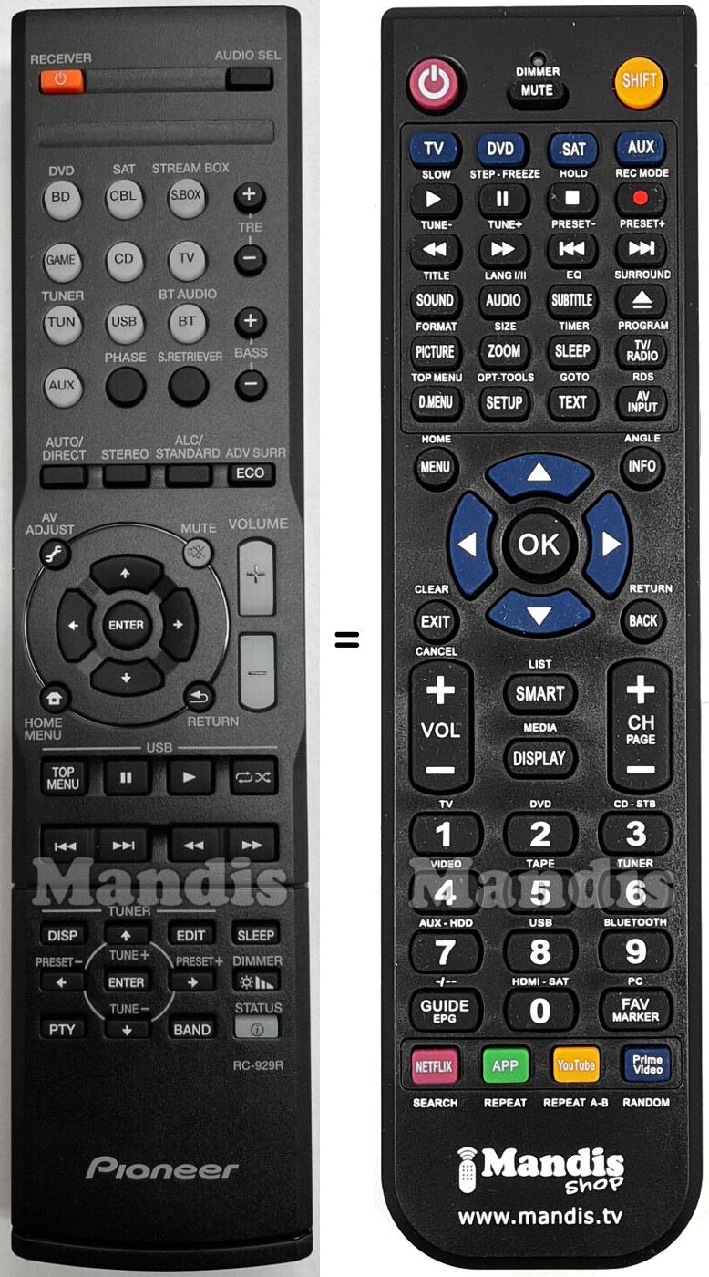 Remote control for Pioneer RC-929R