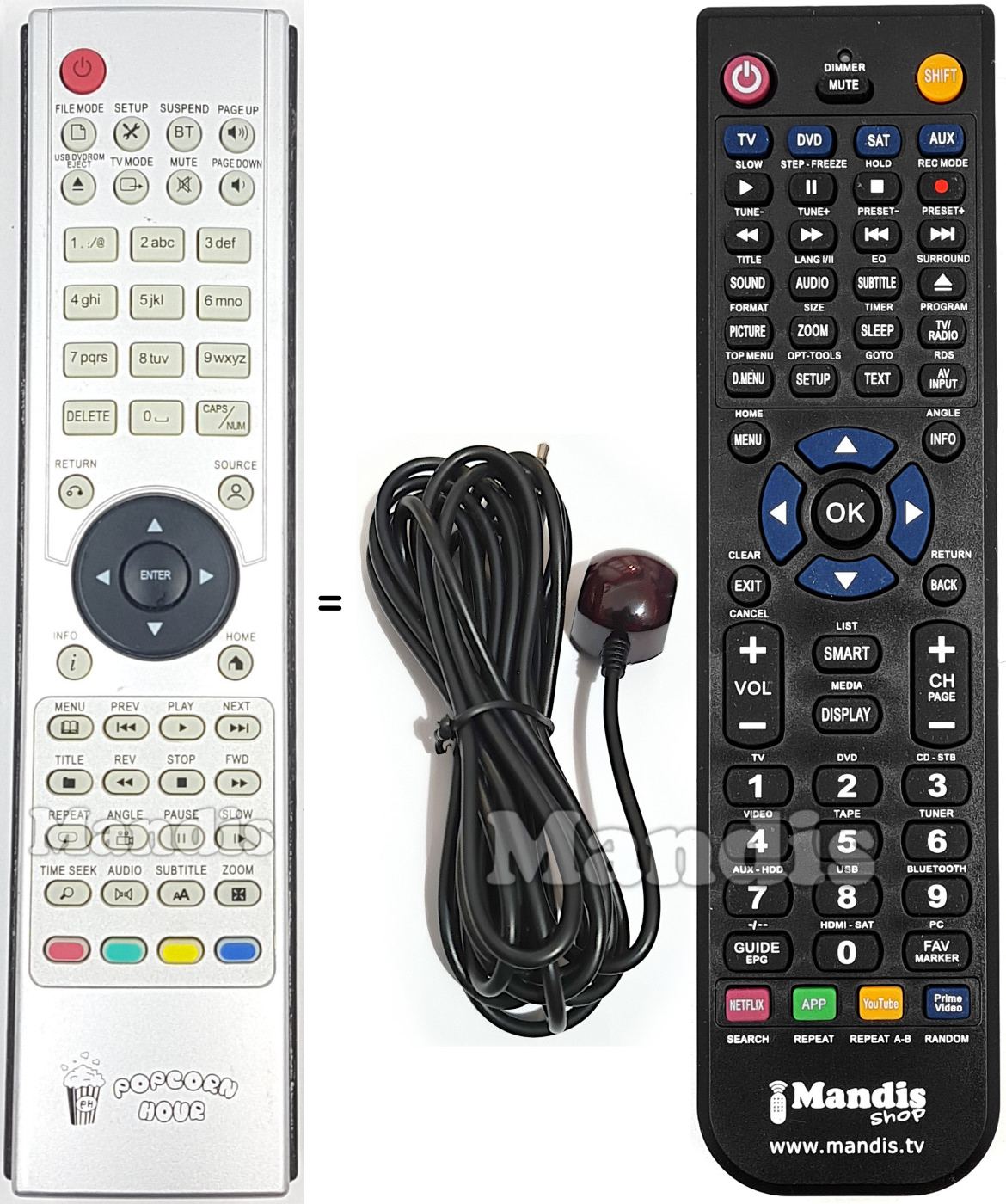 Below, we will show you the correspondence between each button on the original remote control and the button that performs the same function on the replacement remote control. In some cases, you may need to press the SHIFT key before pressing another button to perform certain actions. These additional functions are often not widely used and are included to facilitate understanding of the replacement remote control, or because the original remote control has more buttons than its equivalent.