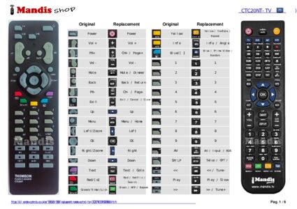 This remote control fully replaces your CTC20NT (05THO0230004) and offers all the functions of the original.