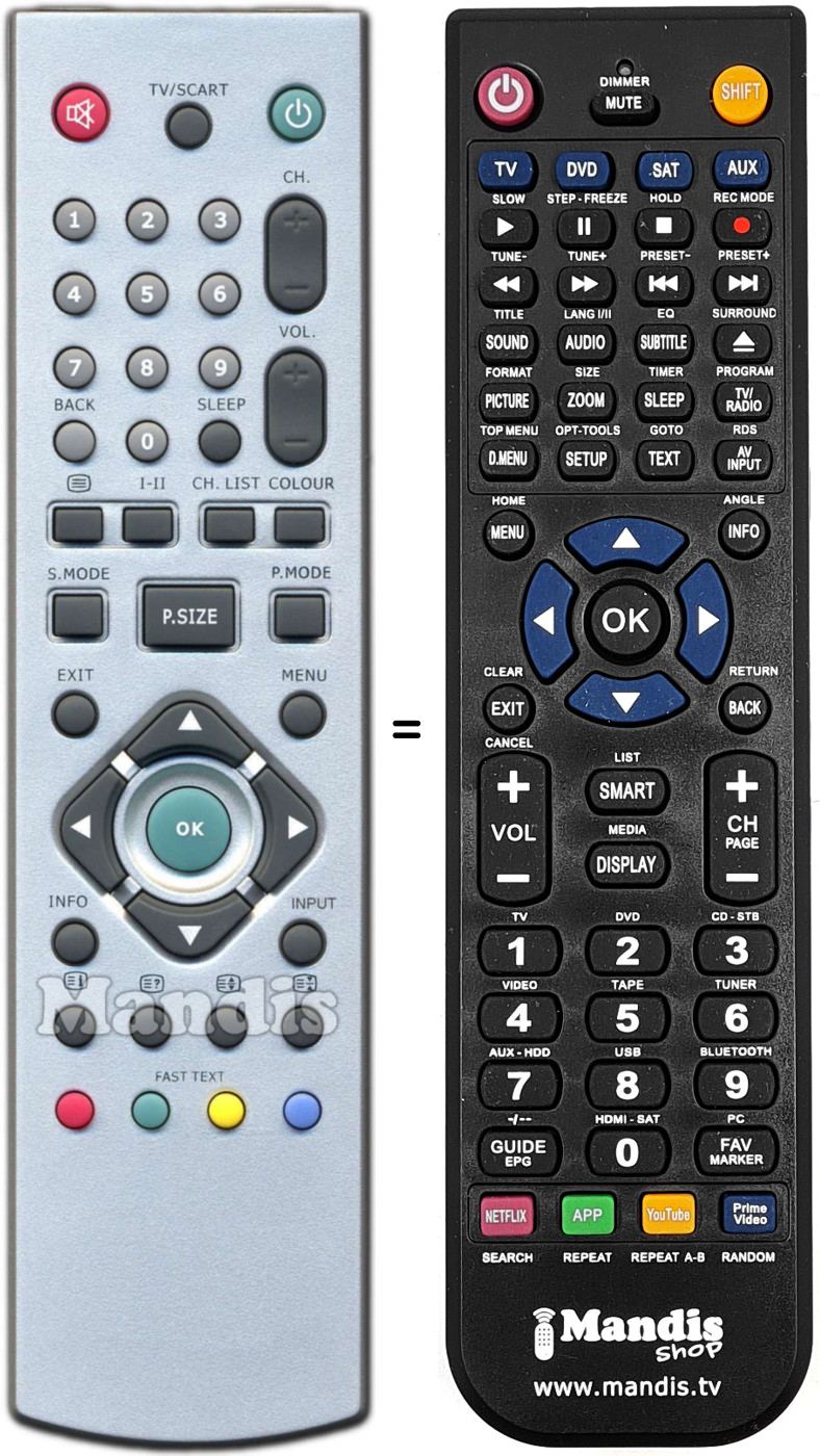Remote control to replace the original RC43ATVSIL and all its functions.