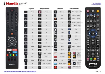 A document is included to help you use the new remote control easily, showing the button correspondence.