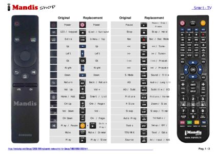 A document is included to help you use the new remote control easily, showing the button correspondence.