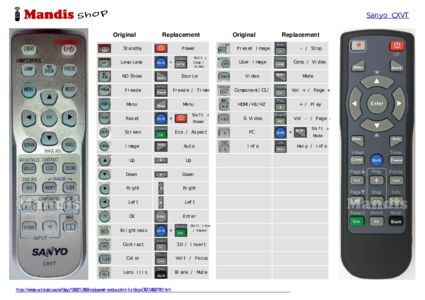 Below, we will show you the correspondence between each button on the original remote control and the button that performs the same function on the replacement remote control. In some cases, you may need to press the SHIFT key before pressing another button to perform certain actions. These additional functions are often not widely used and are included to facilitate understanding of the replacement remote control, or because the original remote control has more buttons than its equivalent.