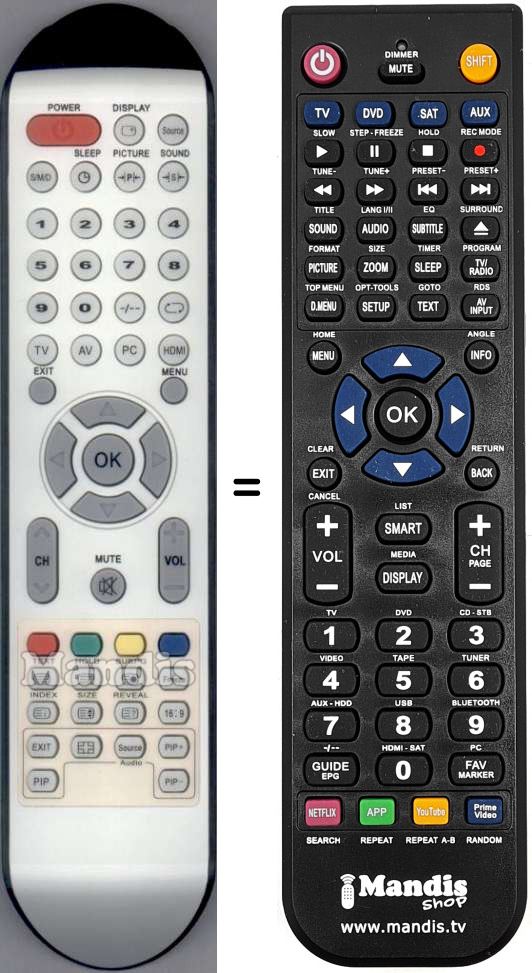 Remote control to replace the original and all its functions.