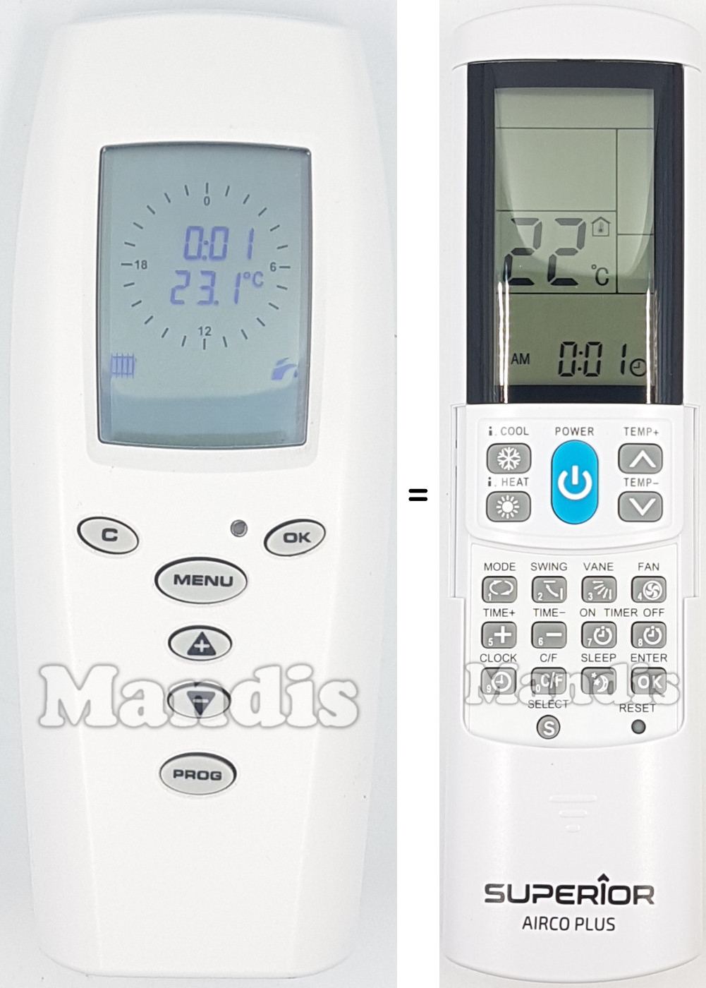 My LG air-conditioner's remote died and need replacement. AircoPlus did the job. I should point out that the code match did not correspond according to manufacturer's table. Let the auto-search code set up do the work. Also, excellent service by Mandis Remotes with a well-protected package.