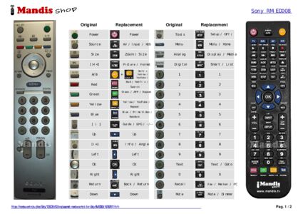 This remote control fully replaces your RM-ED008 (147997811) and offers all the functions of the original.
