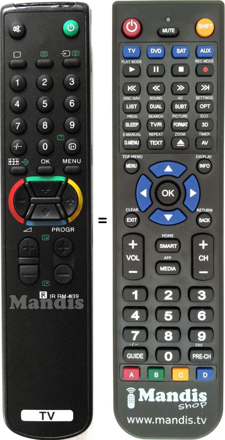 This remote control fully replaces your RM839 and offers all the functions of the original.
