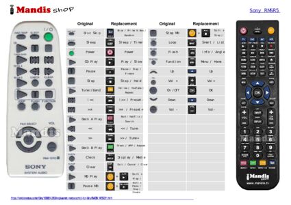 Below, we will show you the correspondence between each button on the original remote control and the button that performs the same function on the replacement remote control. In some cases, you may need to press the SHIFT key before pressing another button to perform certain actions. These additional functions are often not widely used and are included to facilitate understanding of the replacement remote control, or because the original remote control has more buttons than its equivalent.