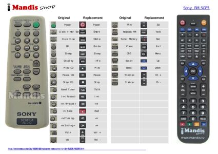 This remote control fully replaces your RM-SGP5 (A4433976A) and offers all the functions of the original.