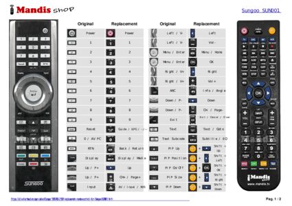 A document is included to help you use the new remote control easily, showing the button correspondence.