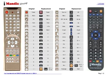 Below, we will show you the correspondence between each button on the original remote control and the button that performs the same function on the replacement remote control. In some cases, you may need to press the SHIFT key before pressing another button to perform certain actions. These additional functions are often not widely used and are included to facilitate understanding of the replacement remote control, or because the original remote control has more buttons than its equivalent.