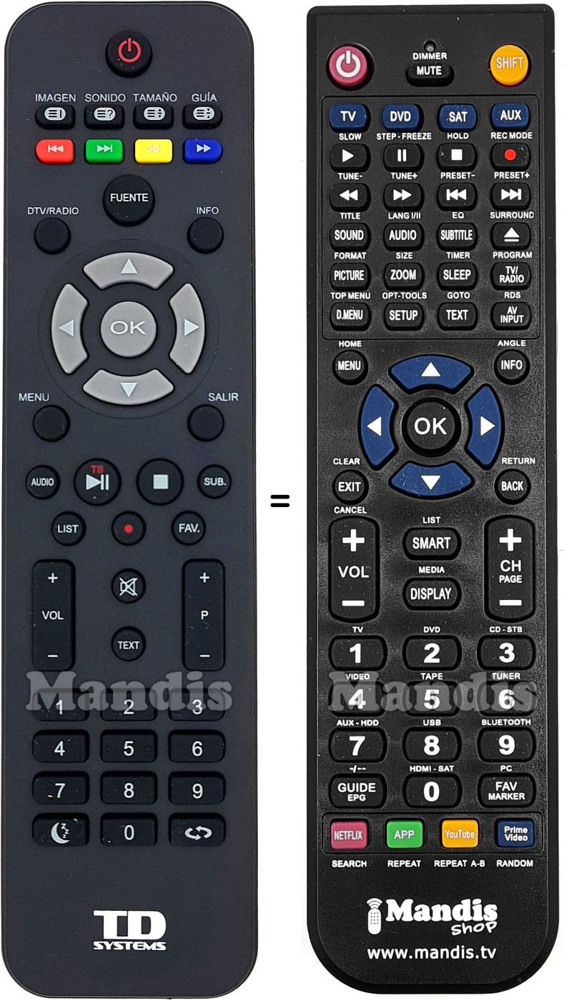Remote control to replace the original and all its functions.