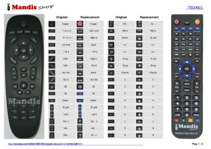 Below, we will show you the correspondence between each button on the original remote control and the button that performs the same function on the replacement remote control. In some cases, you may need to press the SHIFT key before pressing another button to perform certain actions. These additional functions are often not widely used and are included to facilitate understanding of the replacement remote control, or because the original remote control has more buttons than its equivalent.