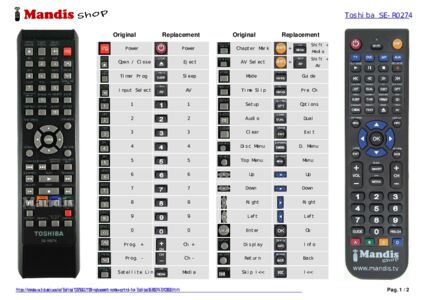 Below, we will show you the correspondence between each button on the original remote control and the button that performs the same function on the replacement remote control. In some cases, you may need to press the SHIFT key before pressing another button to perform certain actions. These additional functions are often not widely used and are included to facilitate understanding of the replacement remote control, or because the original remote control has more buttons than its equivalent.