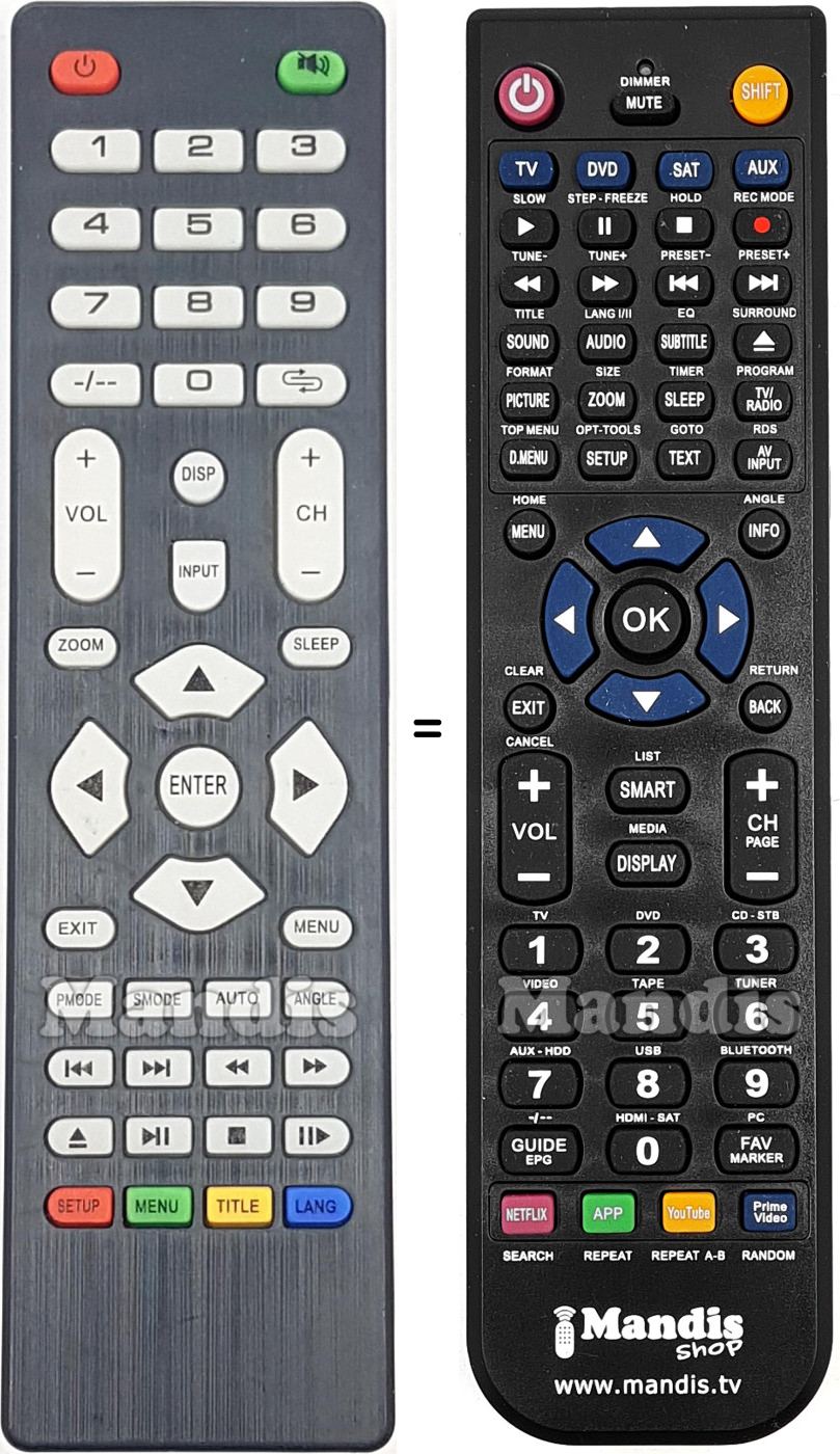 We offer a replacement remote control that completely replaces your original in all its functions. This isn't a universal remote, but an exact copy with all the same buttons and functionalities.