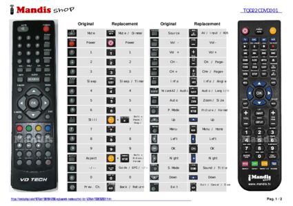 Home > Brands > Remote controls VD Tech > Remote control for VD TECH TQD22CDVD001