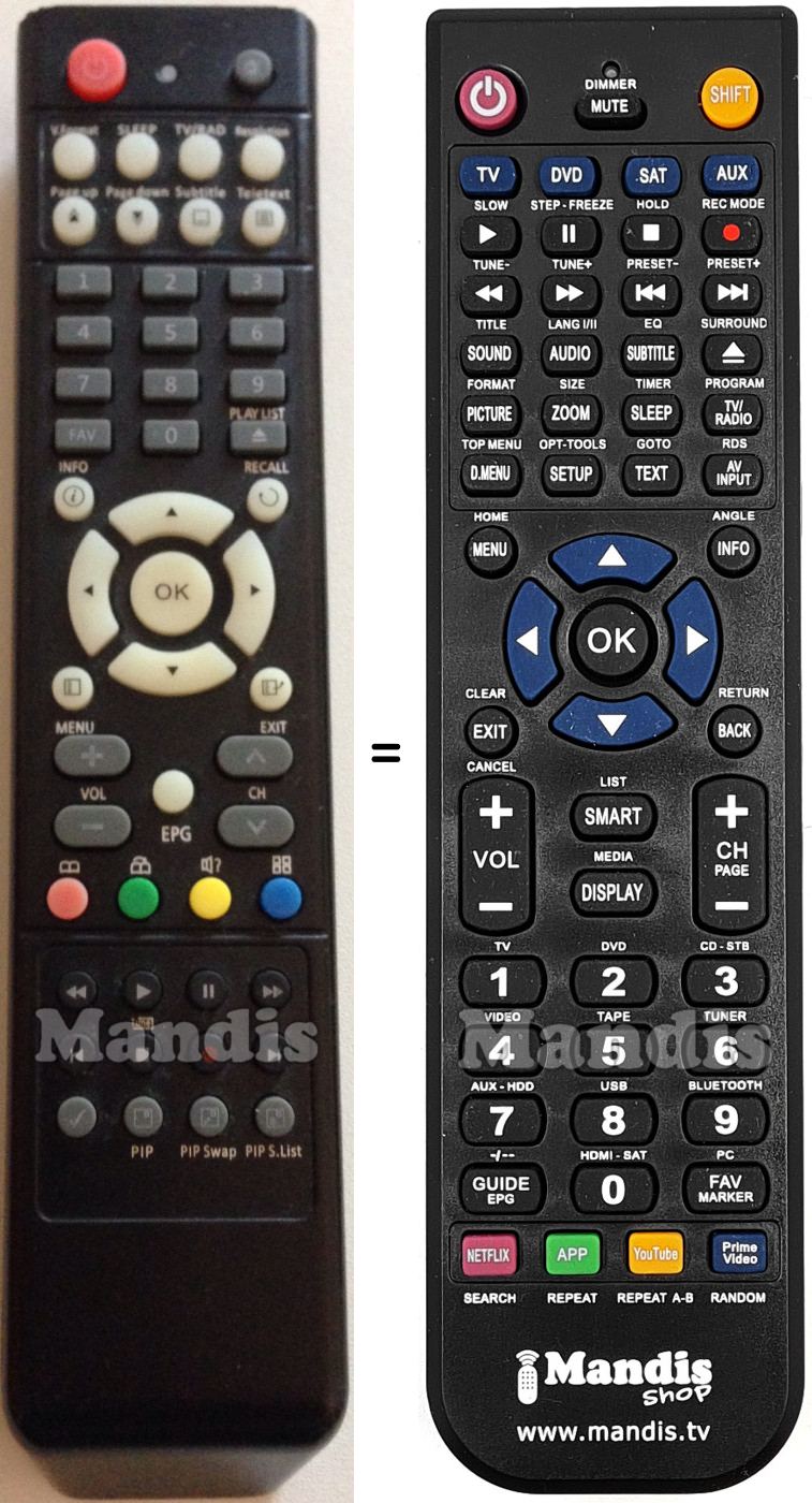 Below, we will show you the correspondence between each button on the original remote control and the button that performs the same function on the replacement remote control. In some cases, you may need to press the SHIFT key before pressing another button to perform certain actions. These additional functions are often not widely used and are included to facilitate understanding of the replacement remote control, or because the original remote control has more buttons than its equivalent.
