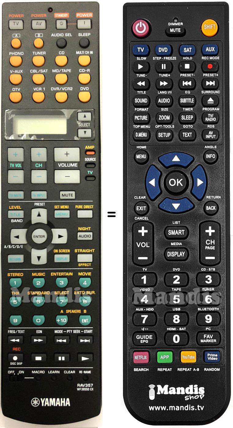 Below, we will show you the correspondence between each button on the original remote control and the button that performs the same function on the replacement remote control. In some cases, you may need to press the SHIFT key before pressing another button to perform certain actions. These additional functions are often not widely used and are included to facilitate understanding of the replacement remote control, or because the original remote control has more buttons than its equivalent.