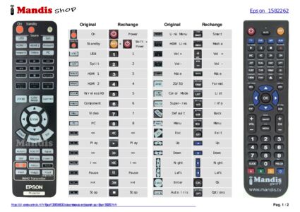 Accueil > Marques > Télécommandes Epson > Télécommande pour Epson 1582262 > Répartition interactive des touches Epson 1582262