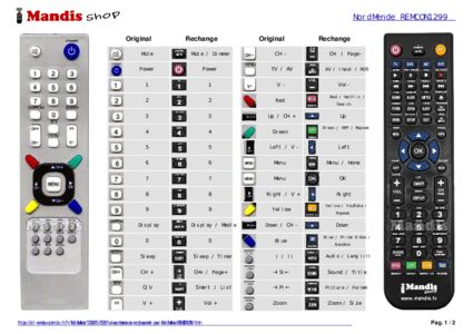 Un document est inclus pour vous aider à utiliser facilement la nouvelle télécommande, en indiquant la correspondance des boutons.