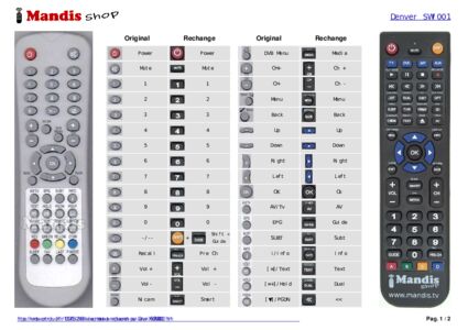 Un document est inclus pour vous aider à utiliser facilement la nouvelle télécommande, en indiquant la correspondance des boutons.