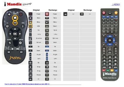 Accueil > Marques > Télécommande pour JAZ001 > Répartition interactive des touches JAZ001