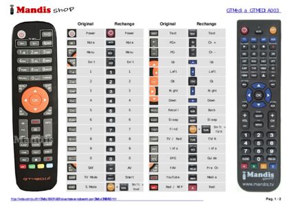 Accueil > Marques > Télécommandes GTMedia > Télécommande pour GTMedia GTMEDIA003 > Répartition interactive des touches GTMedia GTMEDIA003