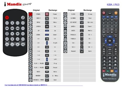 Accueil > Marques > Télécommandes KODA > Télécommande pour KODA IP915 > Répartition interactive des touches KODA IP915