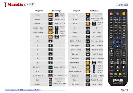 Accueil > Marques > Télécommande pour TZRM-75B > Répartition interactive des touches TZRM-75B