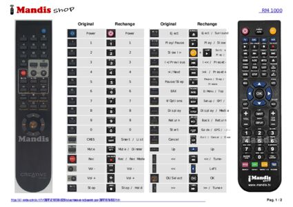 Un document est inclus pour vous aider à utiliser facilement la nouvelle télécommande, en indiquant la correspondance des boutons.