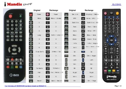 Un document est inclus pour vous aider à utiliser facilement la nouvelle télécommande, en indiquant la correspondance des boutons.