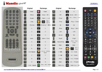 Un document est inclus pour vous aider à utiliser facilement la nouvelle télécommande, en indiquant la correspondance des boutons.