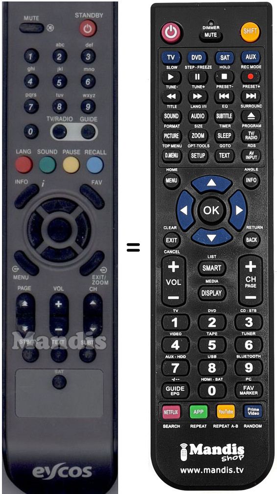 Télécommande qui remplace celle d'origine car elle possède les mêmes fonctions.